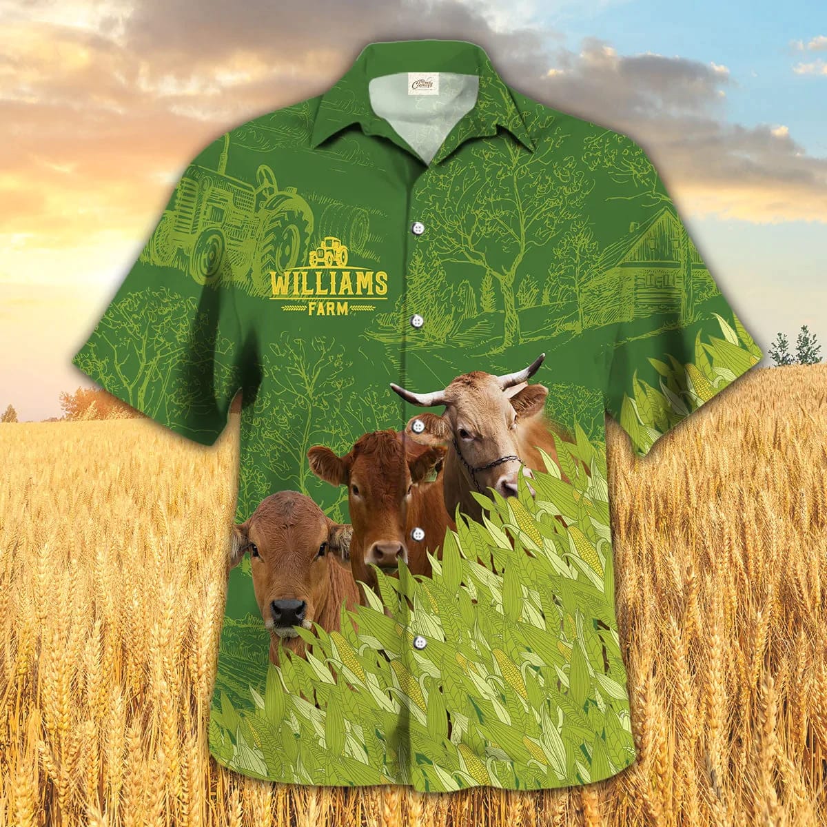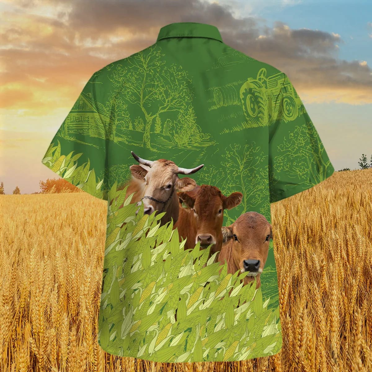 Gelbvieh Farm Corn Pattern Trendy Hawaiian Shirt, Cow Trendy Hawaiian Shirt, Summer Trendy Hawaiian Shirt For Men And Women