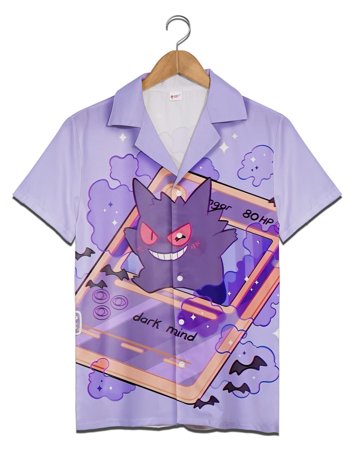 Gengar Purple Pokemon Hawaiian Shirt KLA Anime Gastly Shirt Pokemon Newest Collection