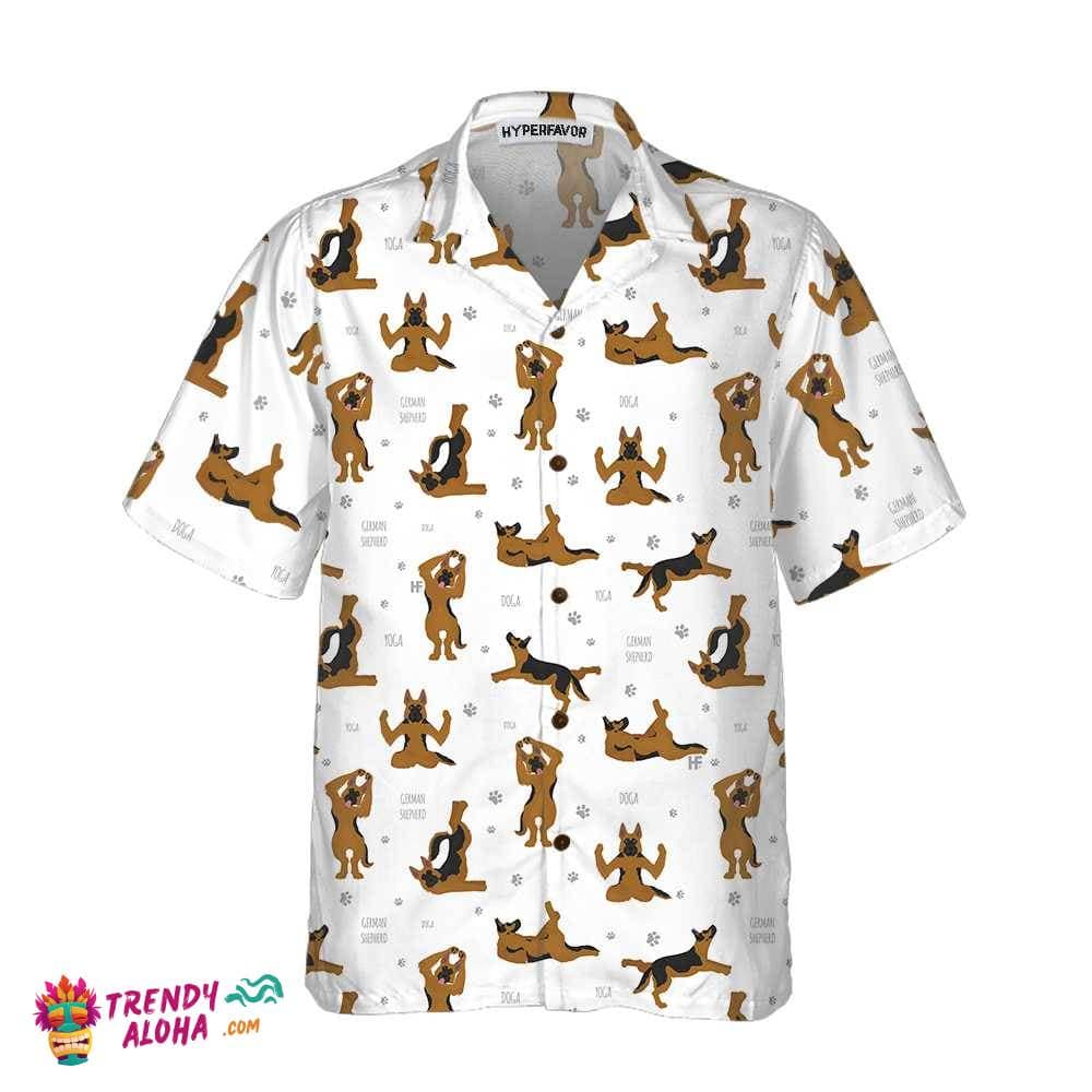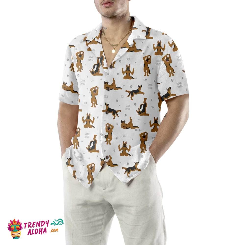 German Shepherd Doing Yoga Hawaiian Shirt, Funny German Shepherd Shirt, Dog Hawaiian Shirt For Adults