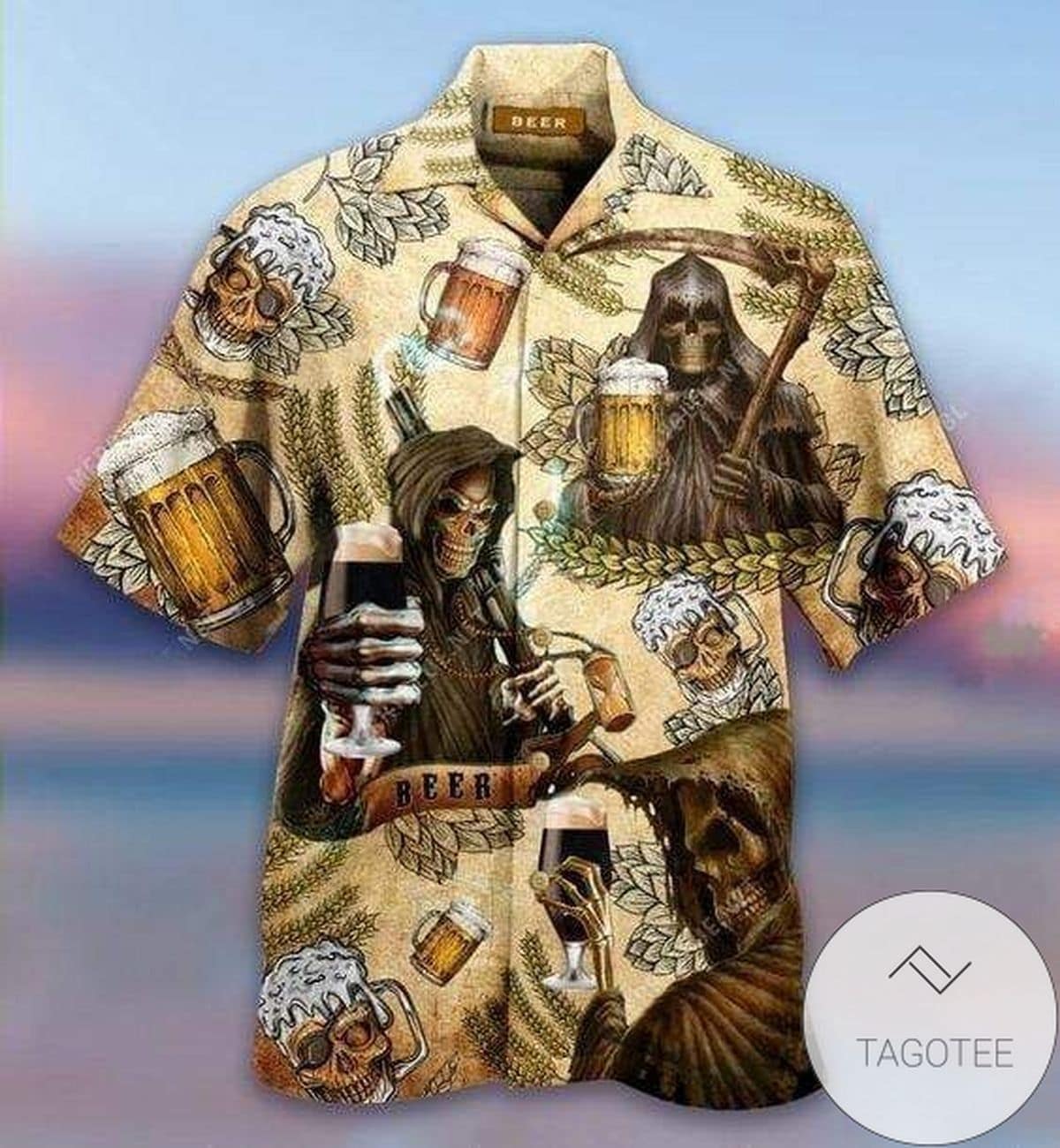 You’re viewing Get Here Hawaiian Shirts Grim Reaper Wishper Back Bring Beer.