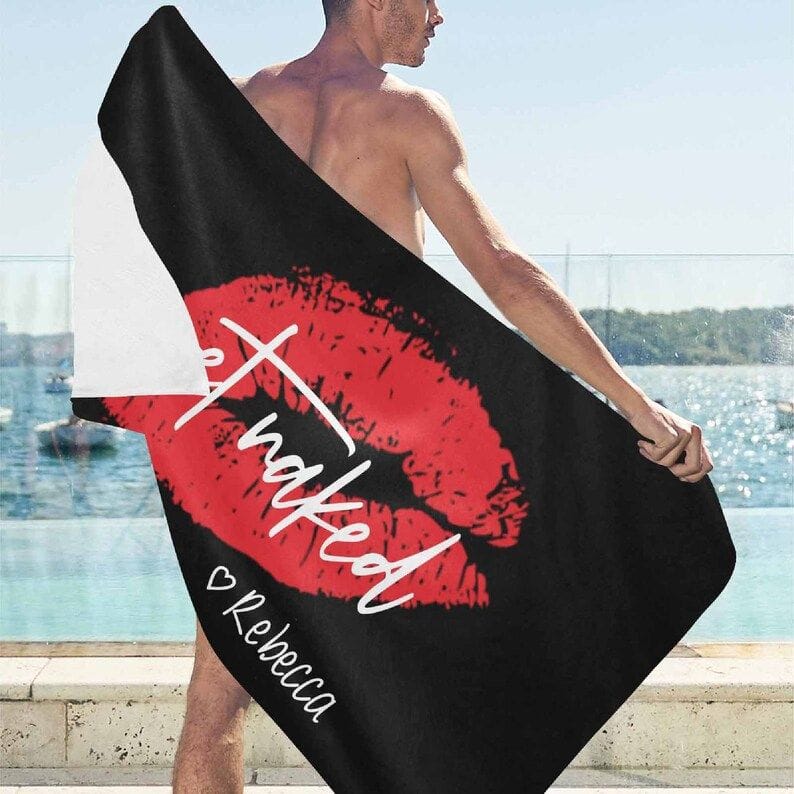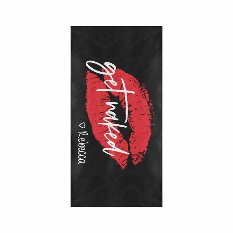 Get Naked Red Lips Personalized Beach Towels Bachelorette Special