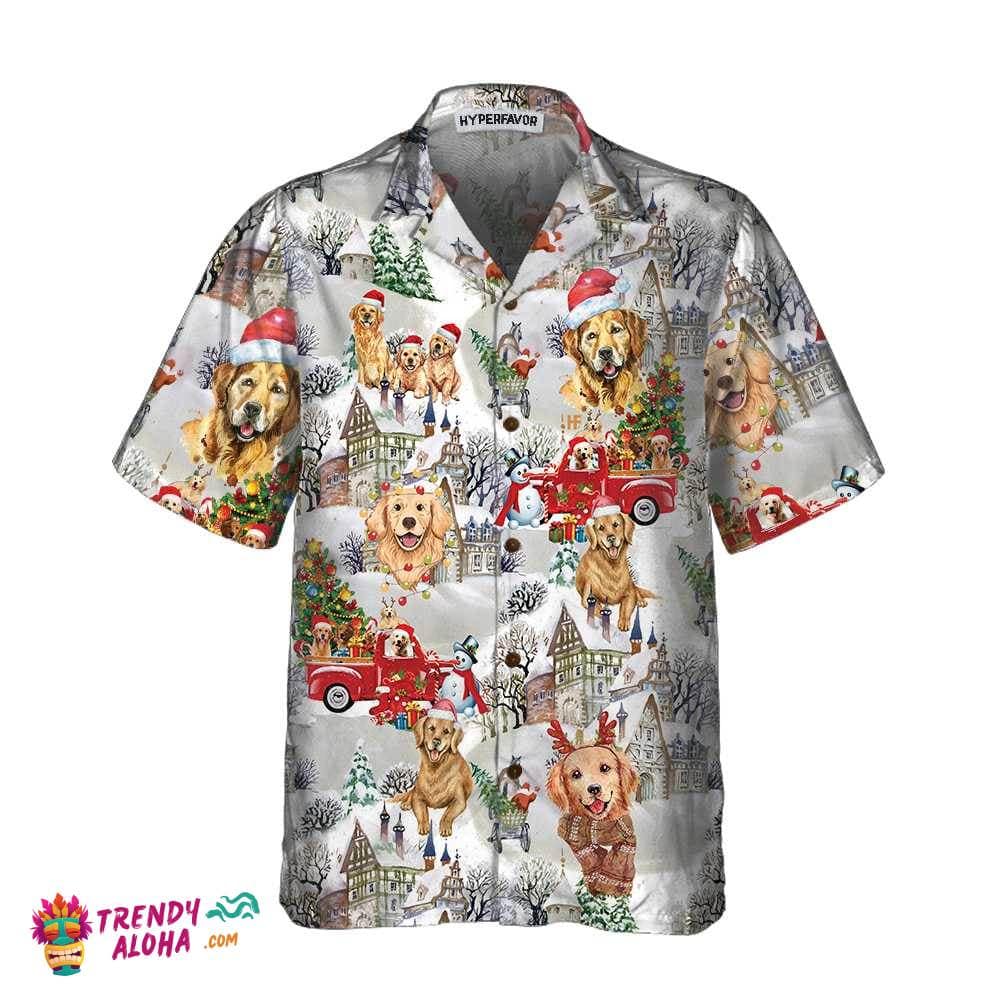 Golden Retriever On Christmas Hawaiian Shirt, Golden Retriever Christmas Shirt, Christmas Gift For Golden Retriever Lover