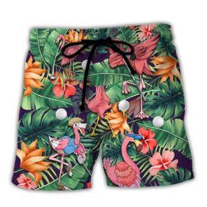 You’re viewing Golf Funny Flamingo Playing Golf Talk Birdie To Me Tropical Golf Lover Trendy KLA Hawaiian Beach Shorts.