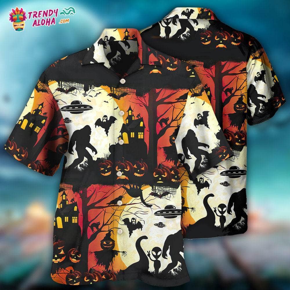 Holidays Big & Tall Halloween Hawaiian Shirt Sasquatch Pumpkinhead Hawaiian Shirt