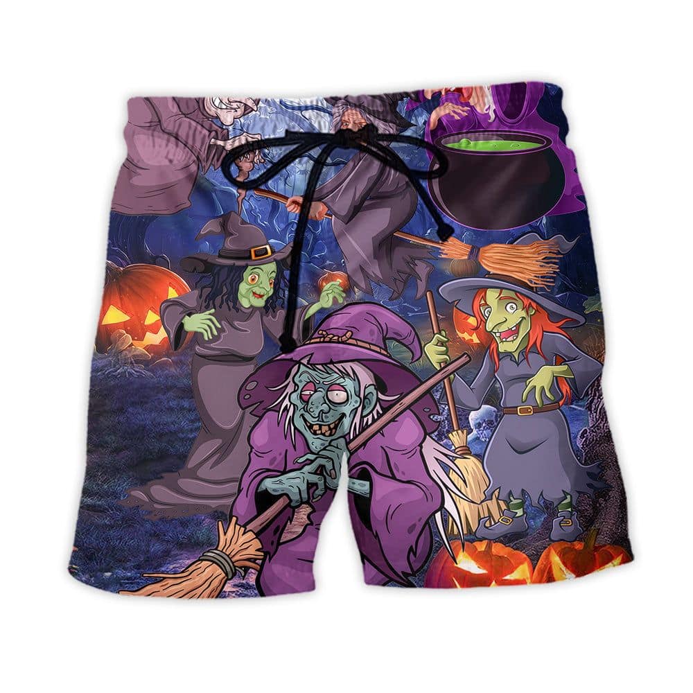 You’re viewing Halloween Funny Witch Pumpkin In The Magic Forest Trendy KLA Hawaiian Beach Shorts.