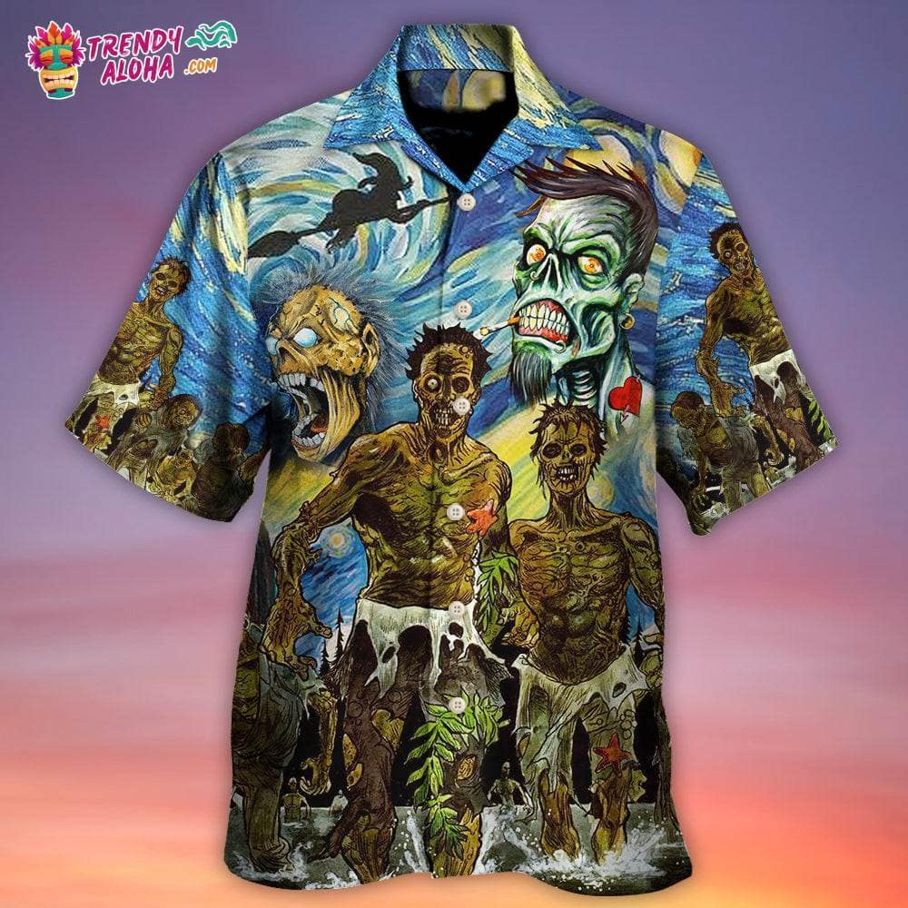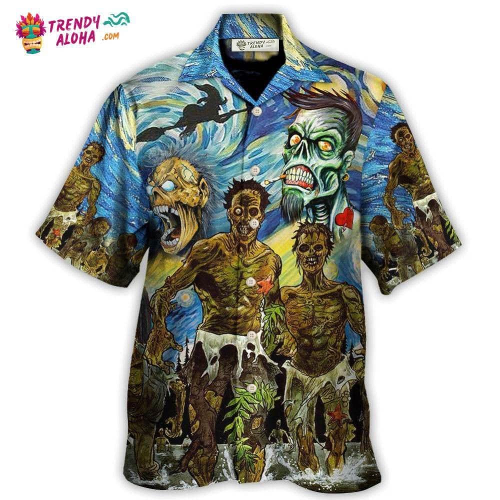 You’re viewing Halloween Zombie Crazy Starry Night Funny Boo Art Style Hawaiian Shirt – Trendy KLA.