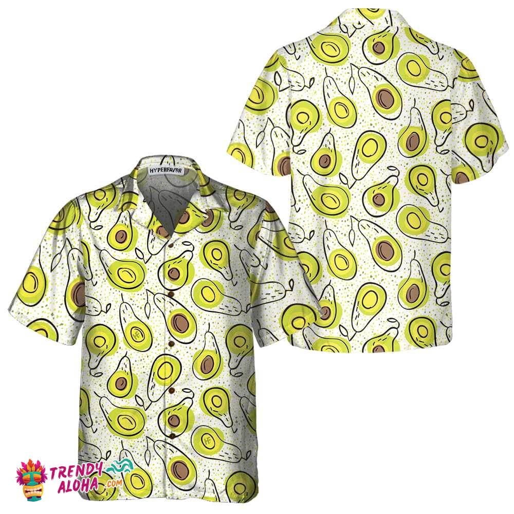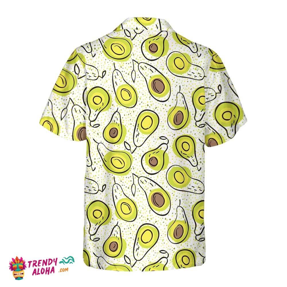 Hand Drawn Avocado Pattern Hawaiian Shirt, Funny Avocado Shirt, Short Sleeve Avocado Print Shirt