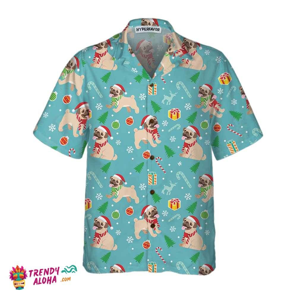 Happy Pug Dog Christmas Hawaiian Shirt, Funny Pug Christmas Shirt