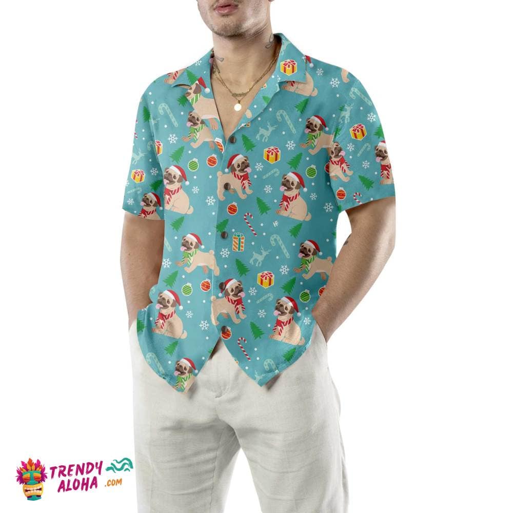 You’re viewing Happy Pug Dog Christmas Hawaiian Shirt, Funny Pug Christmas Shirt.
