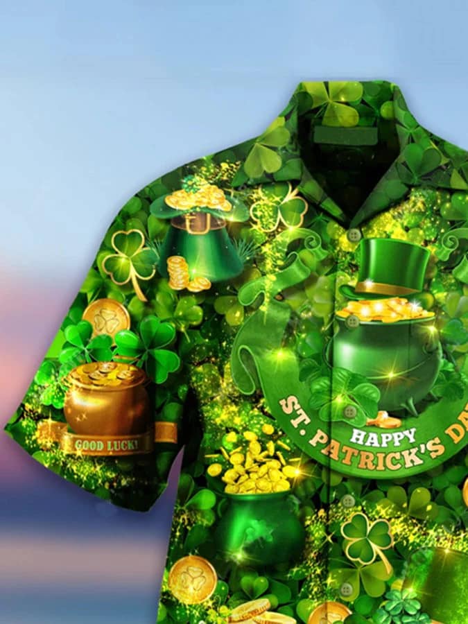 Happy St. Patrick’s Day Trendy Hawaiian Shirt – Men’s Casual Happy St. Patrick’s Day Trendy Hawaiian Shirt