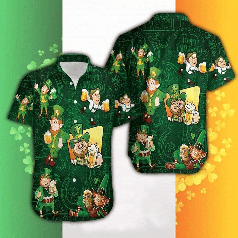 St Patricks Day Hawaii Shirt Leprechauns Pattern Green KLA Shirt St Patricks Day Hawaiian Shirt