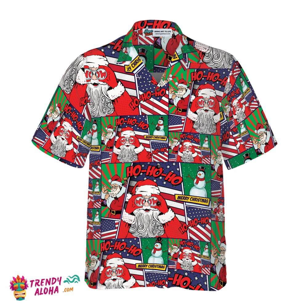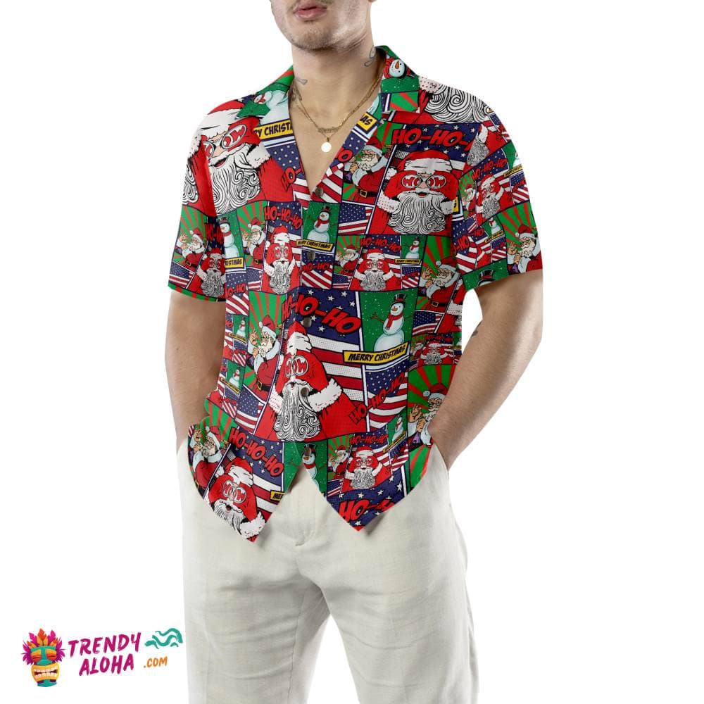 Hawaiian Shirts, Santa With American Flag Comic Style Shirt Short Sleeve, Christmas Shirt Idea Gift For Men And Women