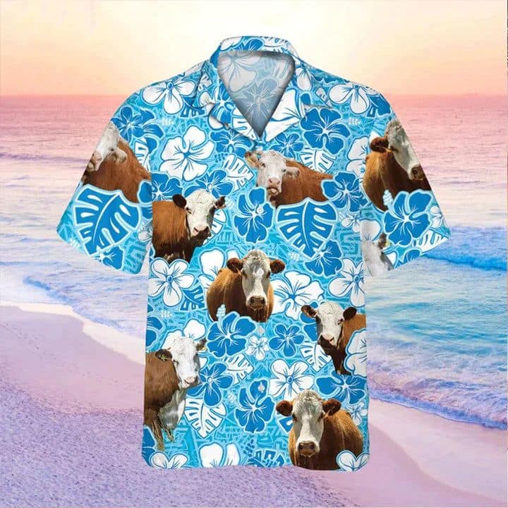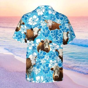 You’re viewing Hereford Blue Floral Cow Hawaiian Shirt.