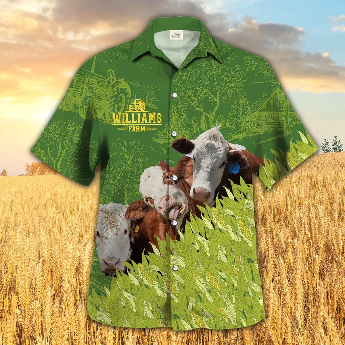 Hereford Farm Corn Pattern Trendy Hawaiian Shirt, Cow Trendy Hawaiian Shirt, Summer Trendy Hawaiian Shirt For Men And Women