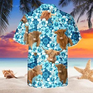 You’re viewing Highland Blue Hibiscus Flowers Hawaiian Shirt, Cow Hawaii Shirt, Cow Lovers Shirt For Men.