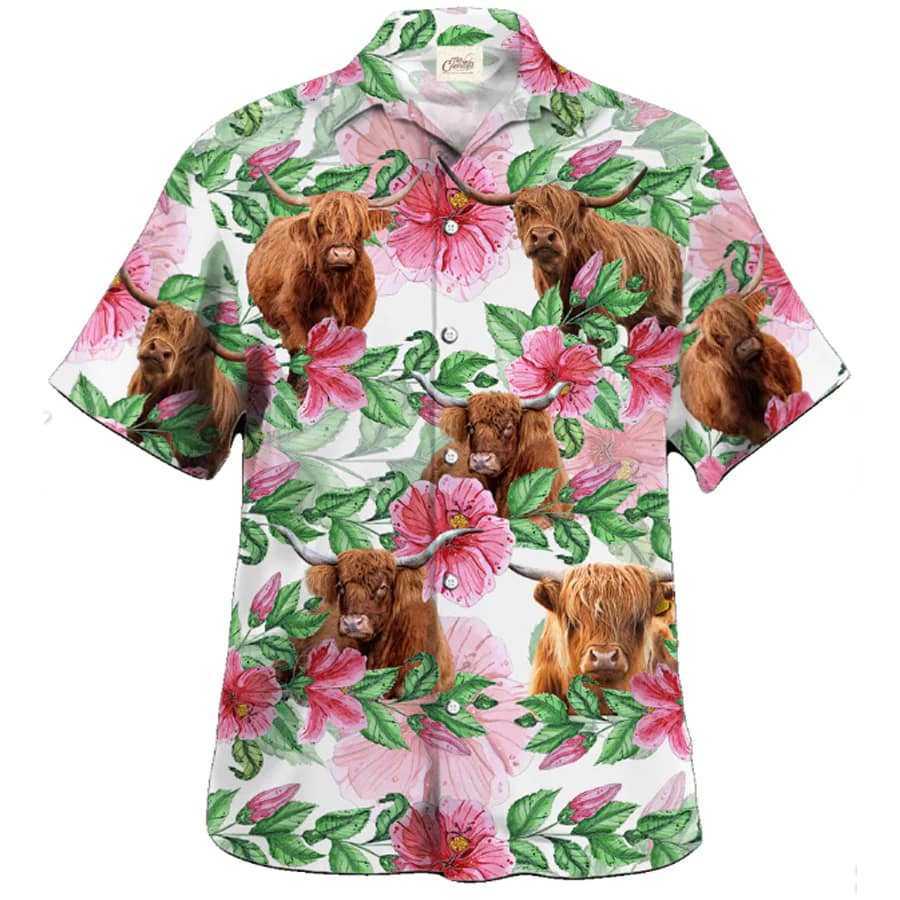 You’re viewing Highland Humor: Cow Trendy Hawaiian Shirt – Funny Tropical Attire for Him.