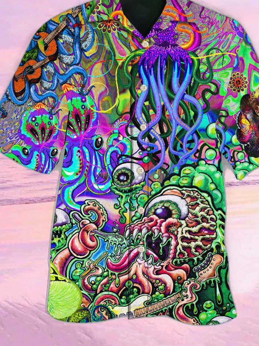 Hippie Funny Octopus Love Music Colorful Ocean Hawaiian Shirts
