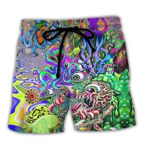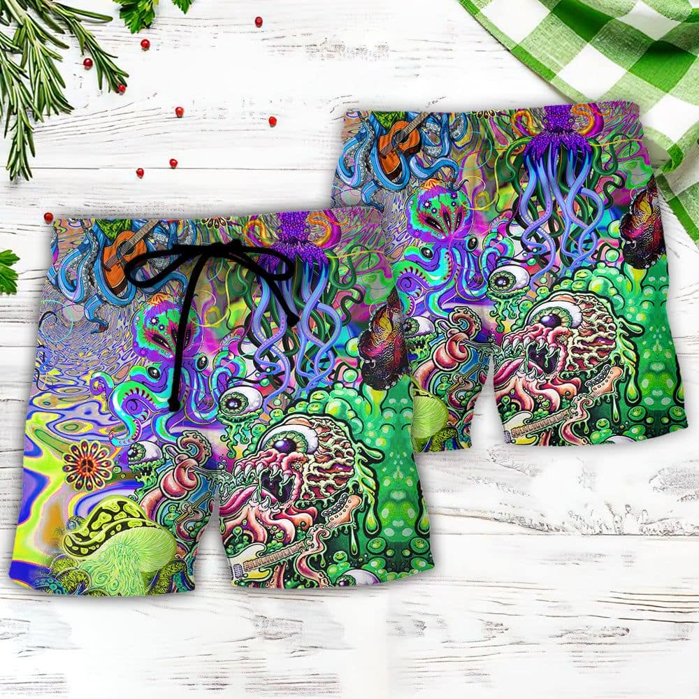 You’re viewing Hippie Funny Octopus Love Music Colorful Ocean Trendy KLA Hawaiian Beach Shorts.