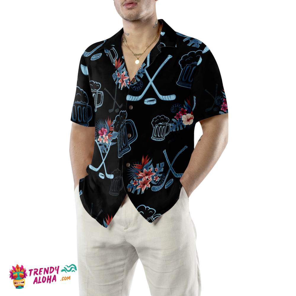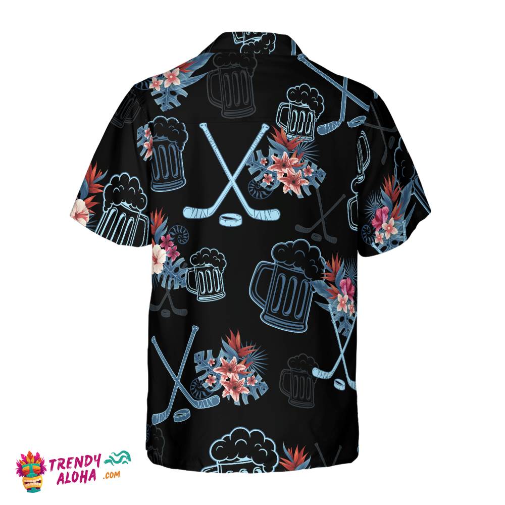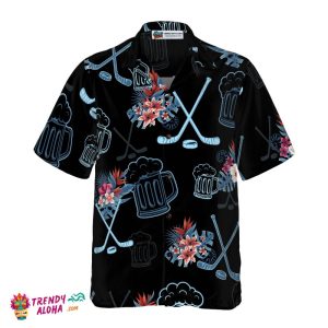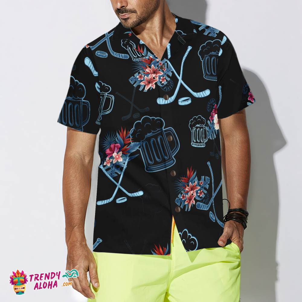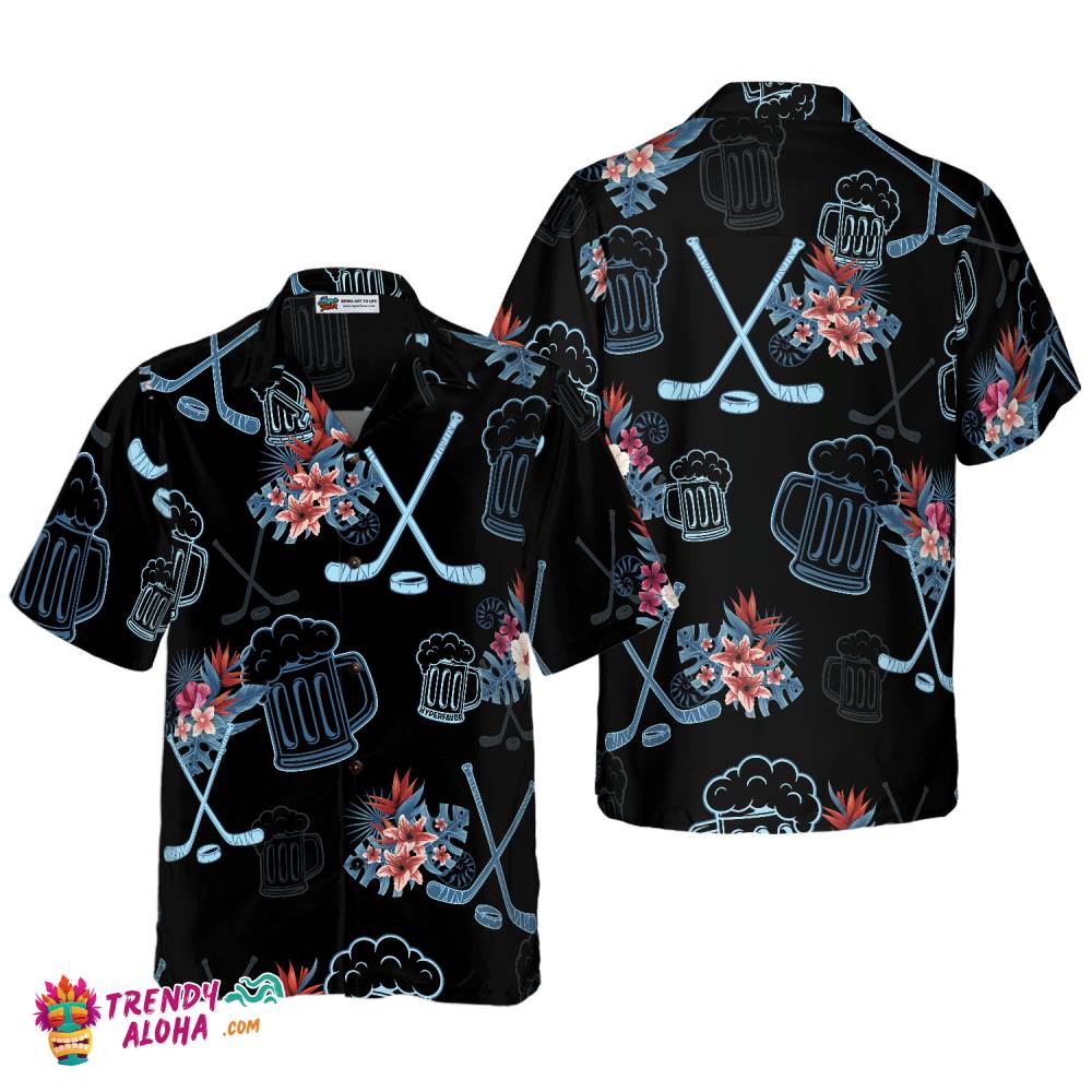Exciting Hockey and Beer Themed Fun in a Hawaiian Shirt Design