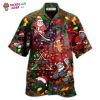 Get Here Hockey And Santa Claus Christmas Unisex Hawaiian Shirt