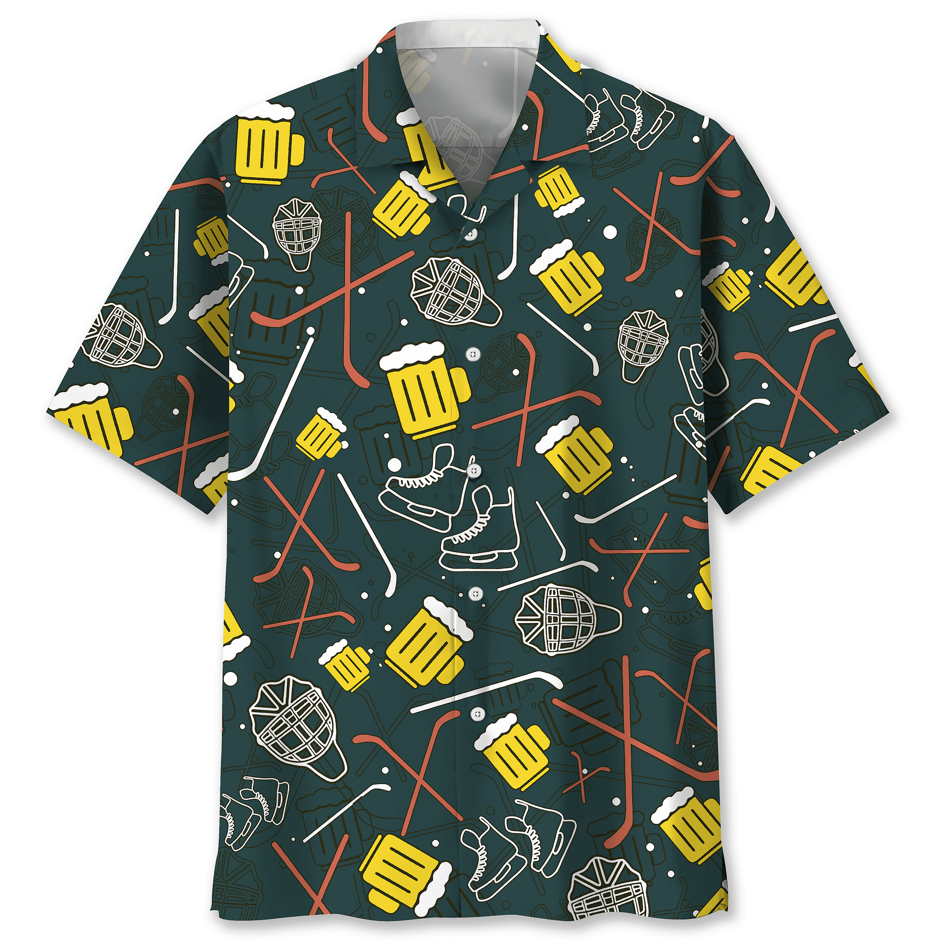 Exciting Hockey and Beer Themed Fun in a Hawaiian Shirt Design