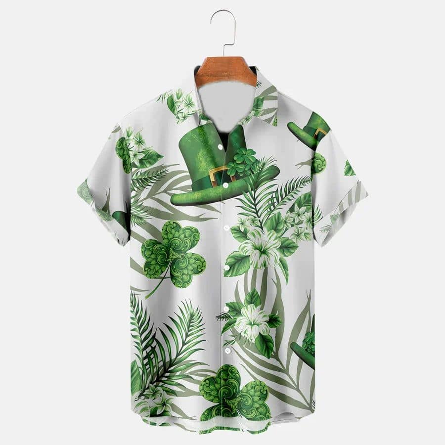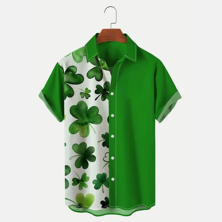 Holiday St. Patrick’s Men’s Bowling Shirts Shamrock Art Hawaiian Shirts, Patrick’s Day Gift