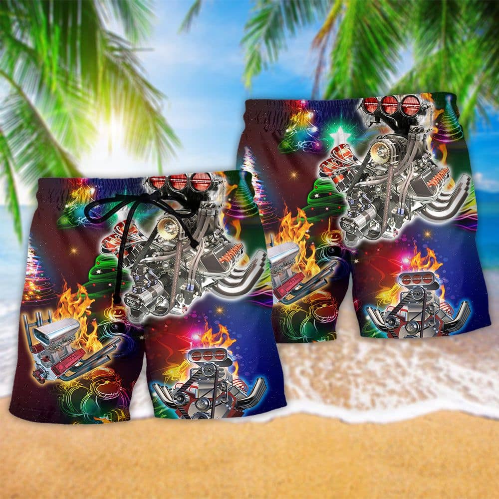 Hot Rod Christmas Tree Trendy KLA Hawaiian Beach Shorts