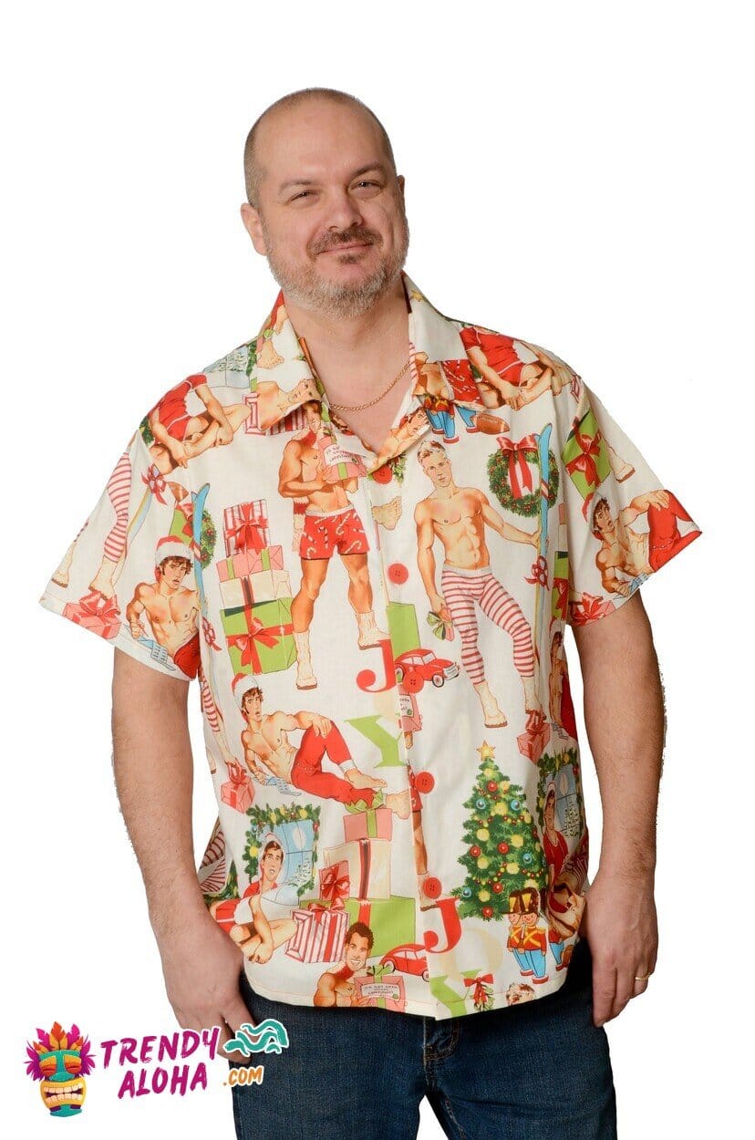 Hunky Christmas Elf Pattern Shirt for Hawaiian Themed Festive Wear