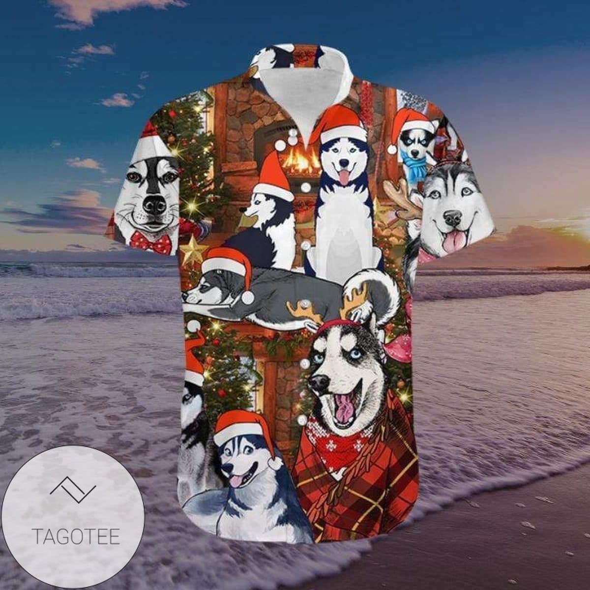 You’re viewing Huskies Enjoying a Christmas Scene on a Hawaiian Shirt.