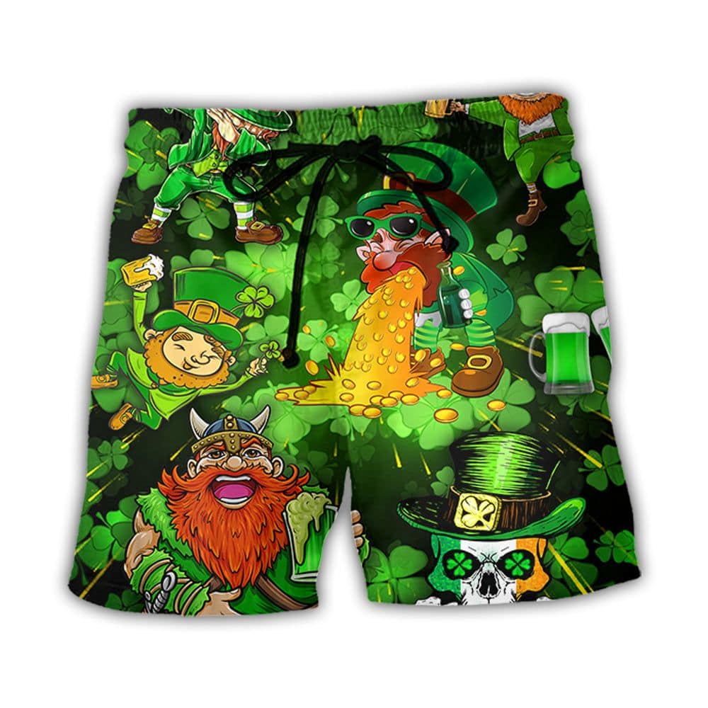 Irish Beer St Patrick’s Day Viking Skull Leprechaun Gnome Trendy KLA Hawaiian Beach Shorts