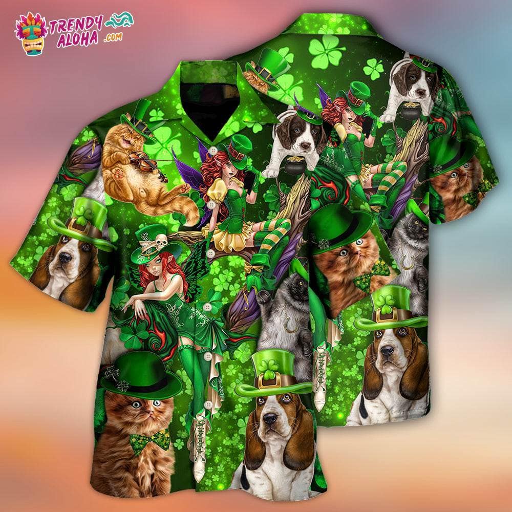 Irish Cat Girl St Patrick’S Day Green Light Hawaiian Shirt – Trendy KLA