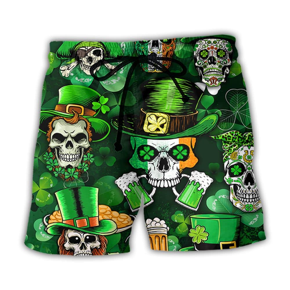 Irish Skull St Patrick’s Day Green Light Trendy KLA Hawaiian Beach Shorts