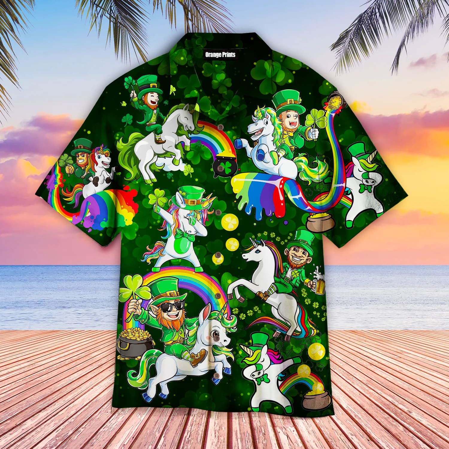 Leprechaun Ride An Unicorn St Patricks Day Trendy Hawaiian Shirt For