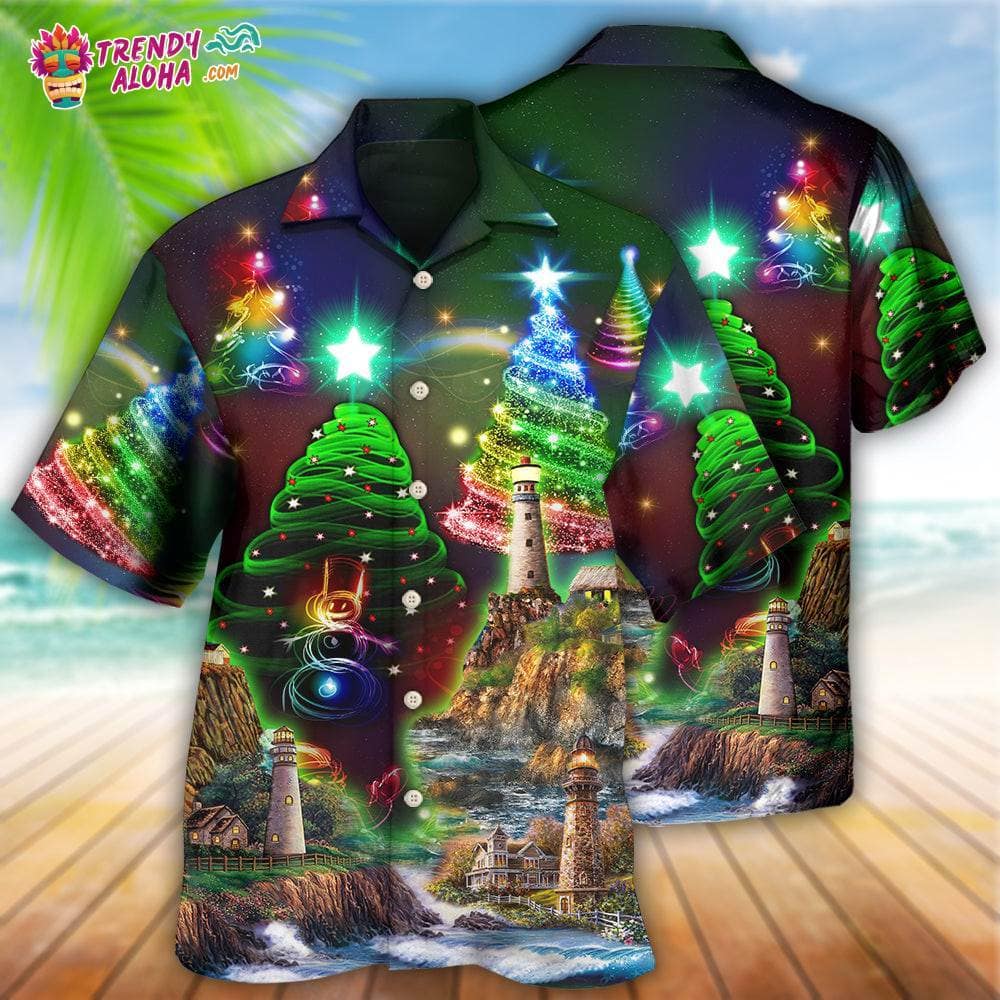 Lighthouse And Merry Christmas Happy Hawaiian Shirt – Trendy KLA