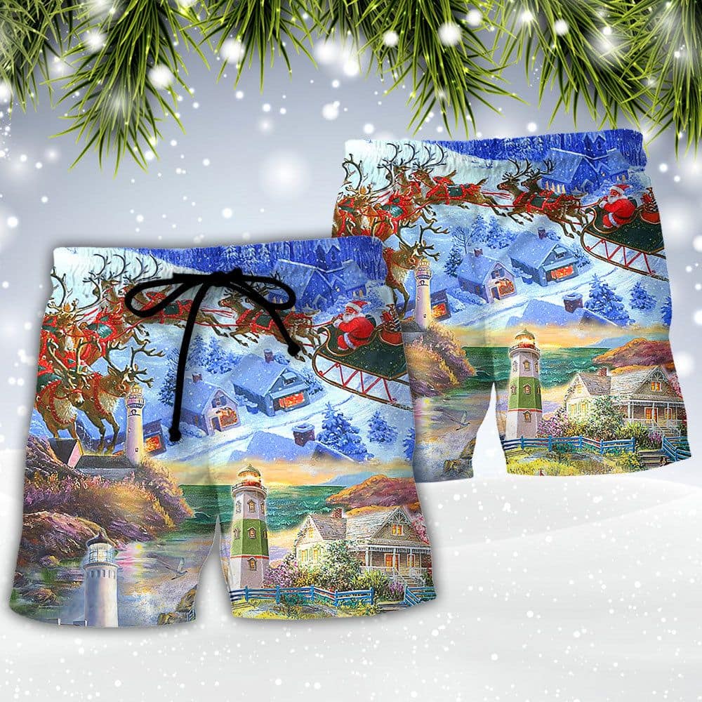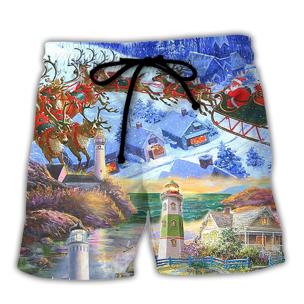 Lighthouse Christmas Santa Be A Lighthouse Trendy KLA Hawaiian Beach Shorts