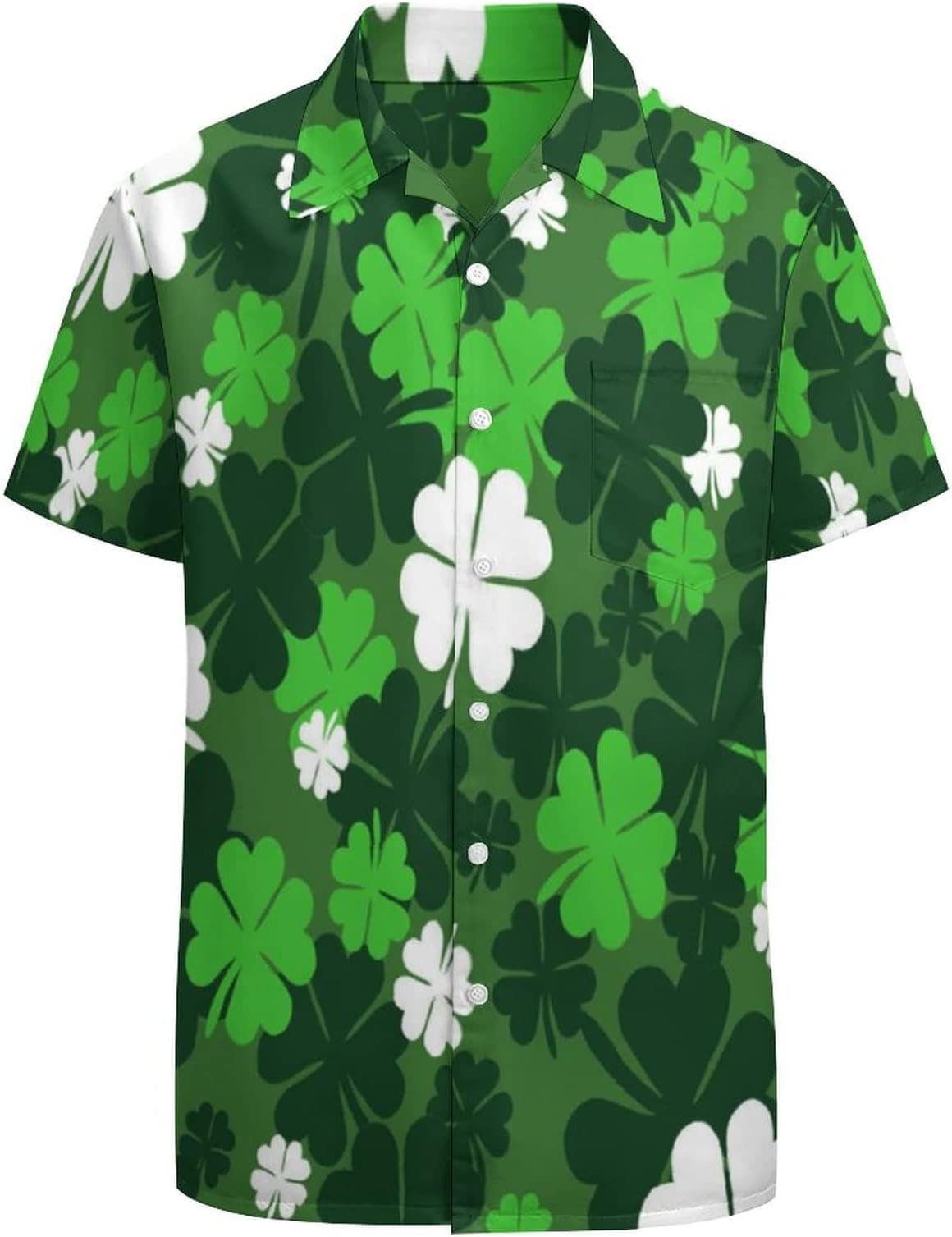 Lucky Clover St Patrick’s Day Hawaiian Shirt for Men Green Irish Shamrock Beach Party Wear
