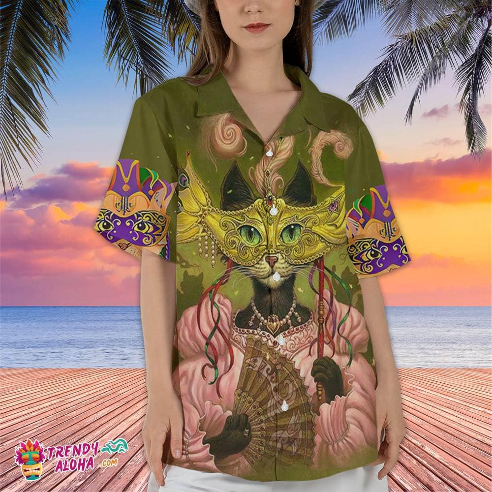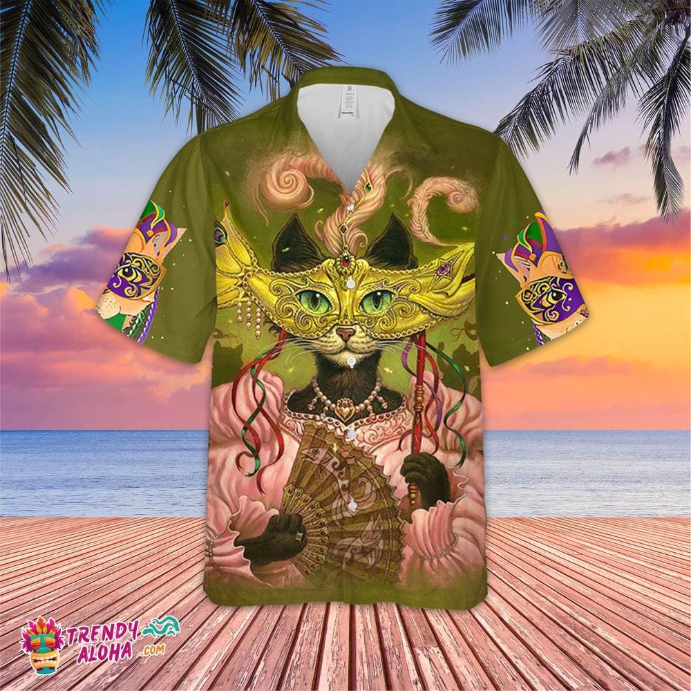 Mardi Gras Cat Hawaiian Shirt, Funny Fat Tuesday Hawaiian, Cat Tuesday Gift, Mardi Gras Parade Hawaiian, Carnival Party Tee, Cat Lover Shirt