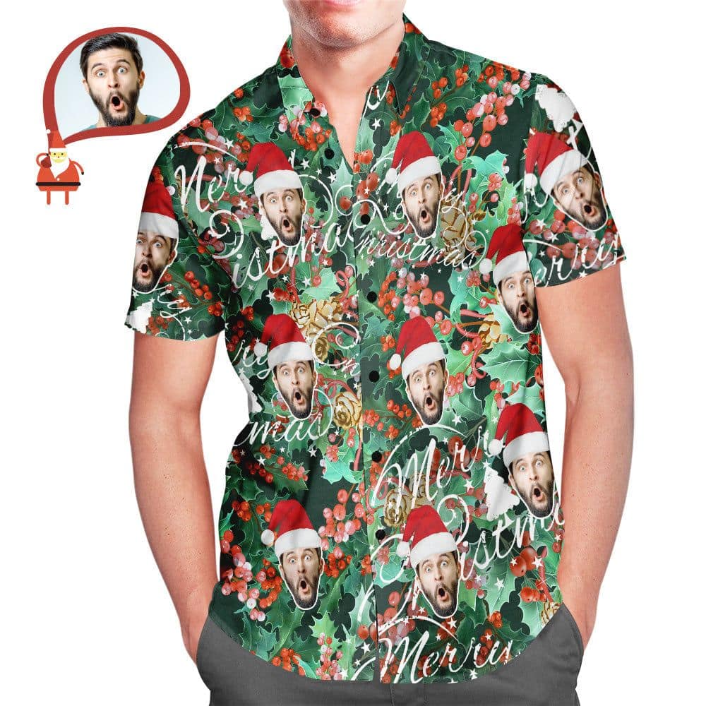 Men’s Custom Face Merry Christmas Hawaiian Shirt Personalized Christmas Gift