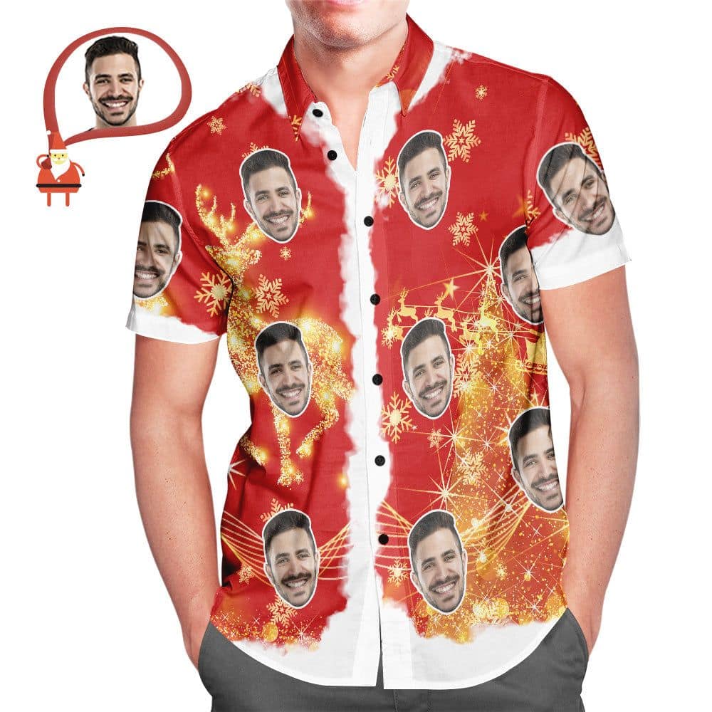 Custom Face Christmas Tree Hawaiian Shirts Personalized Photo Shirts Gift For Men