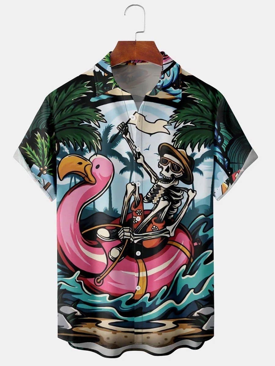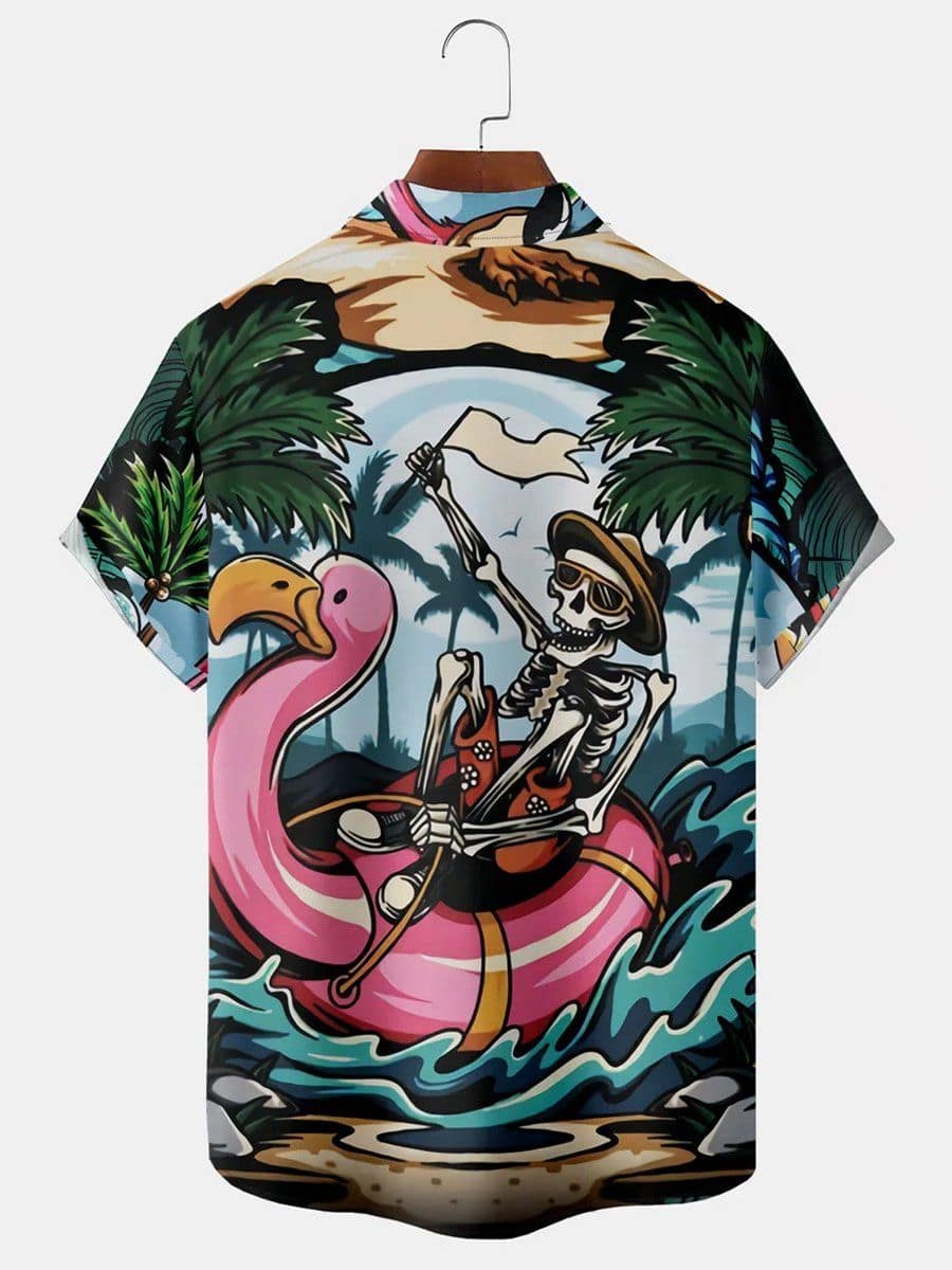 Be the first to review “Men’s Flamingo Skull Floating Beach Party Print Short Sleeve Shirt” Cancel reply