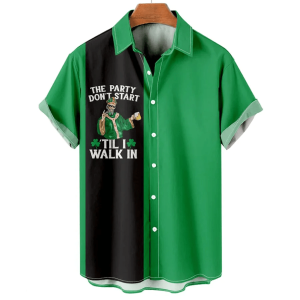 Men’s St. Patrick’s Day Short Sleeve Trendy Hawaiian Shirt, Patrick’s Day Gift