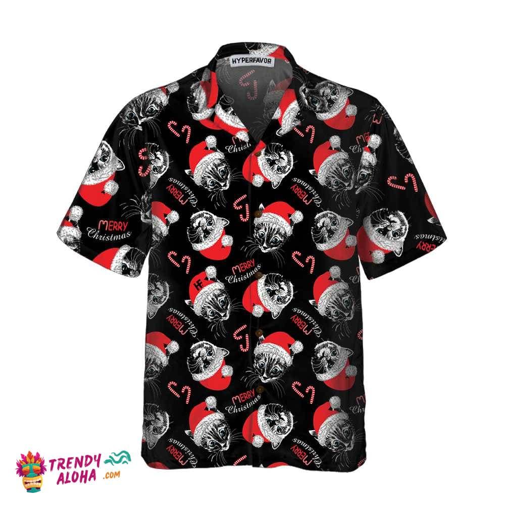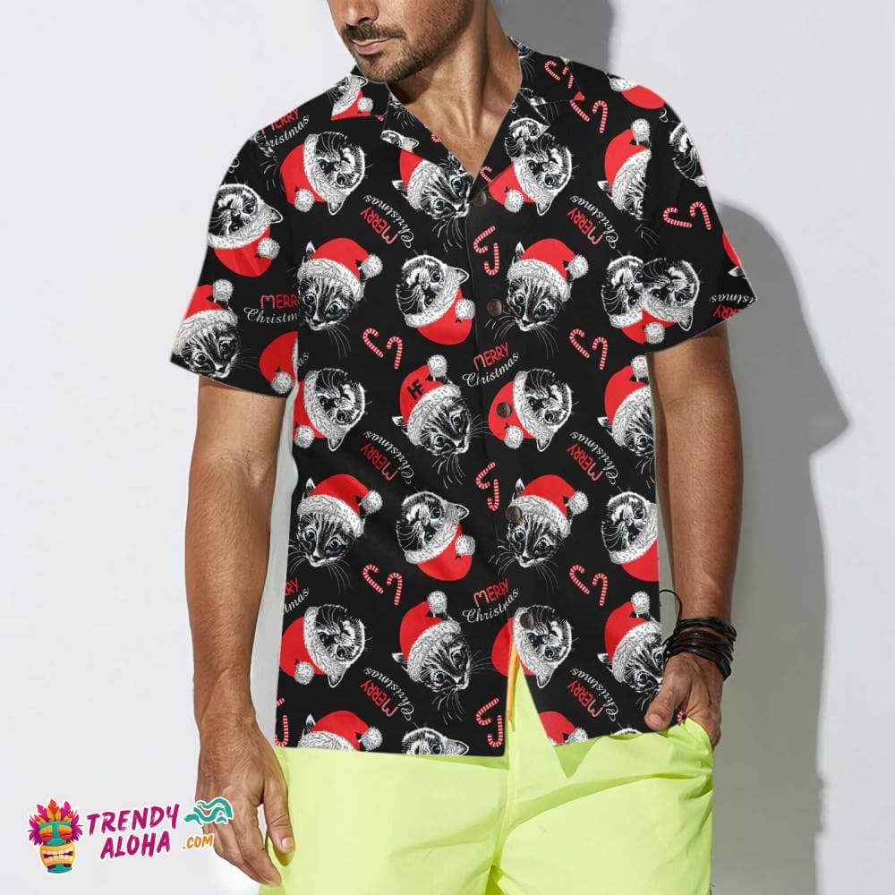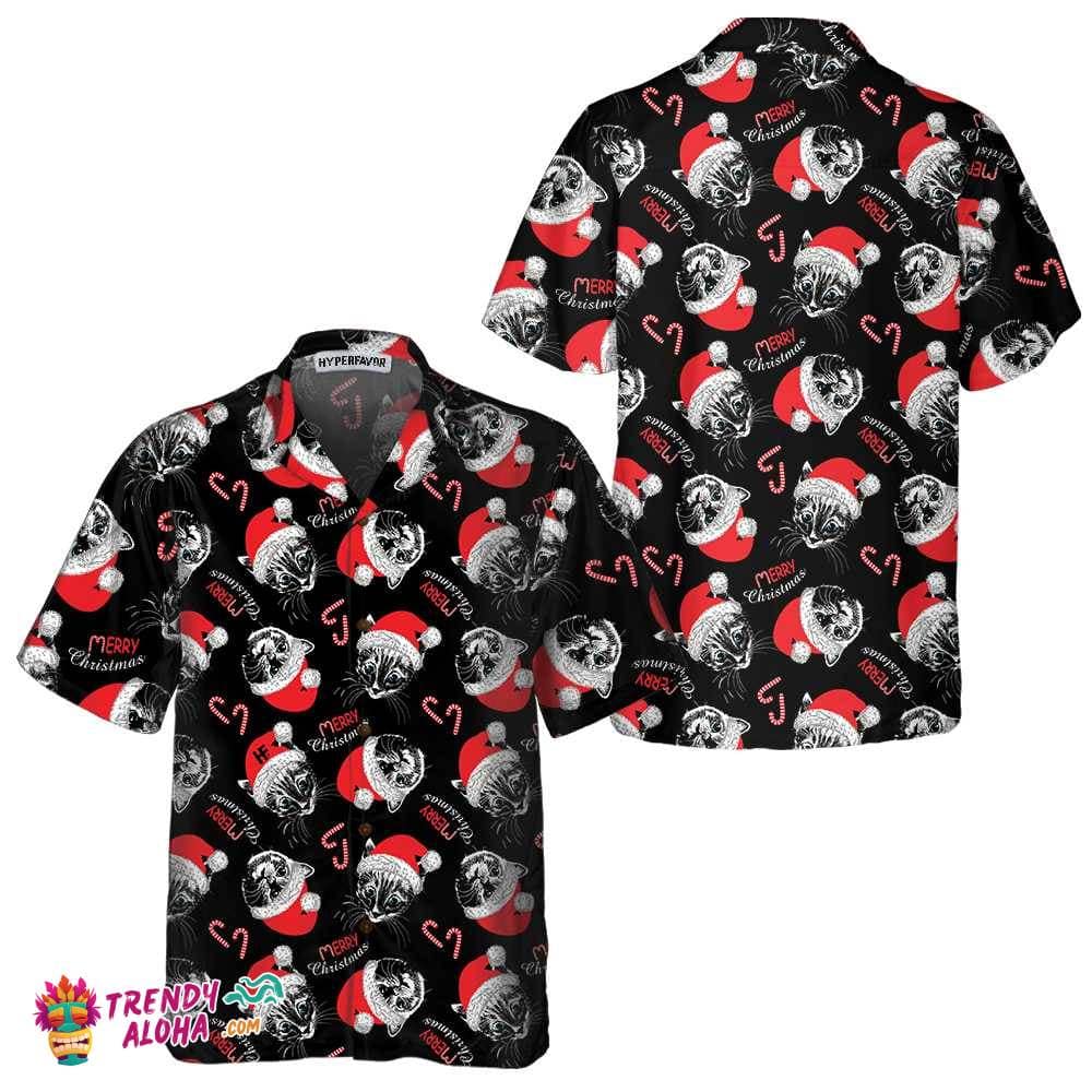 Merry Christmas Black Hawaiian Shirt, Funny Christmas Cat Shirt, Best Xmas Gift Idea