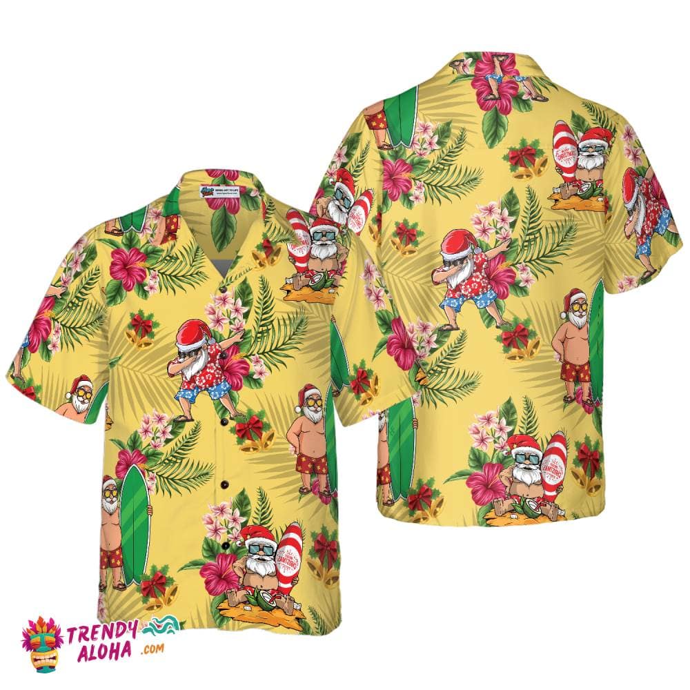 Hawaiian Shirts Mele Kalikimaka Dabbing Santa Surfing Christmas