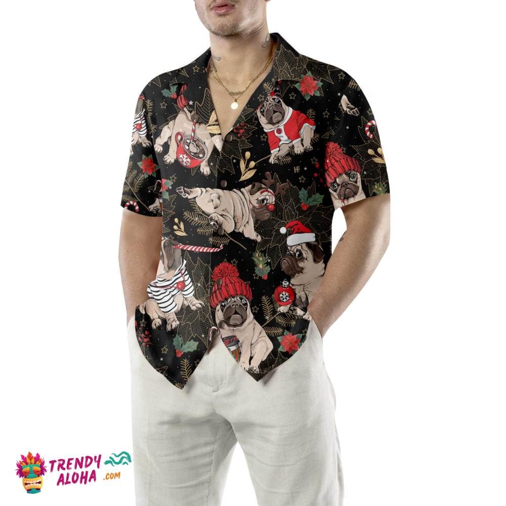 Merry Pug Party Hawaiian Shirt, Funny Christmas Pug Dog Shirt For Men