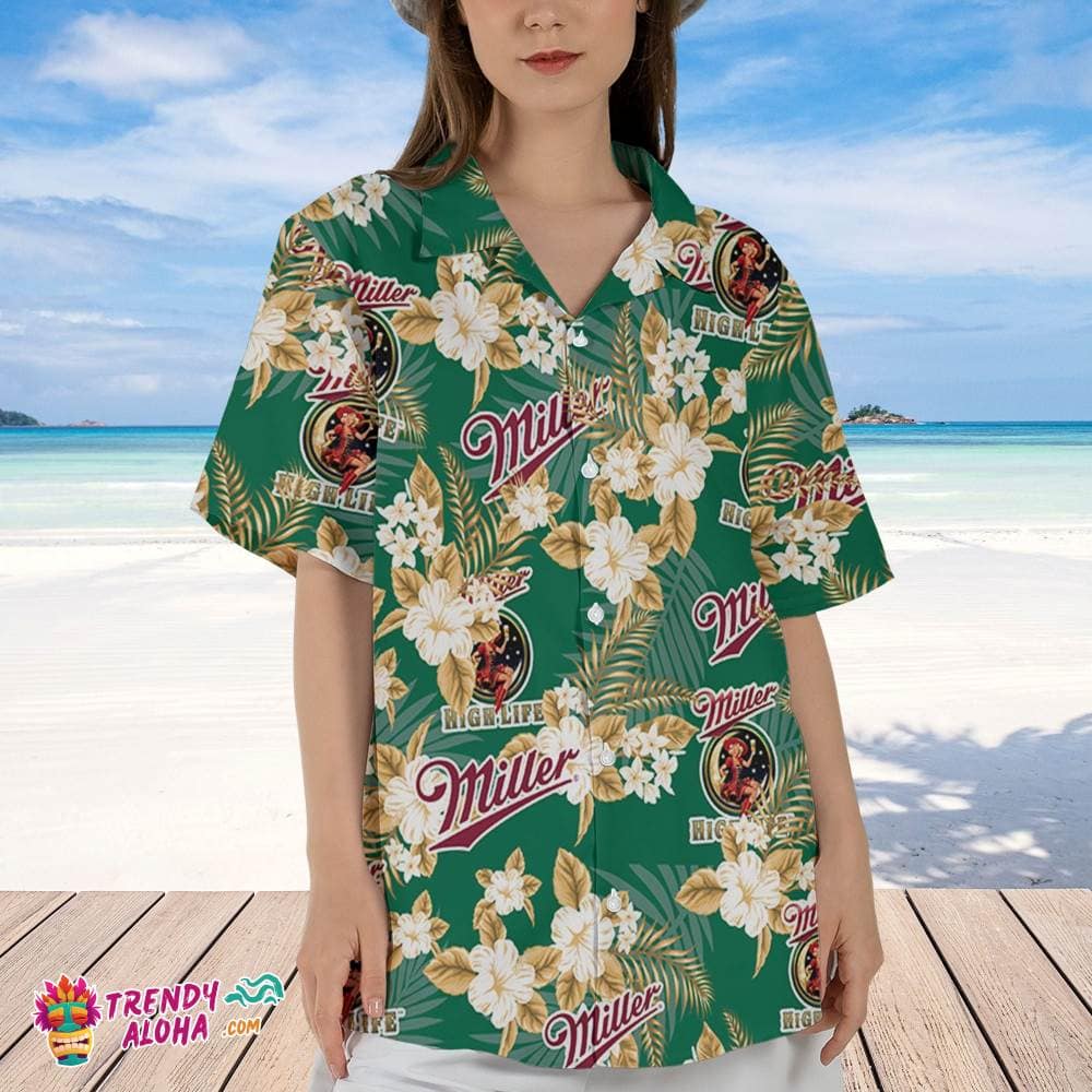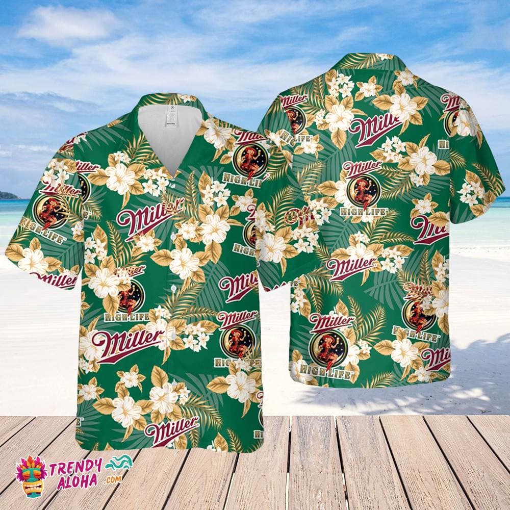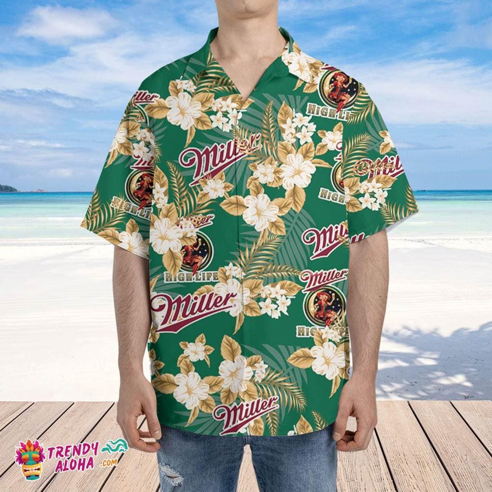 Miller High Life Hawaiian Flowers Pattern Shirt, Hawaii Beer Loves Shirt, Summer Hawaii Shirt Beer, Flowers Shirt