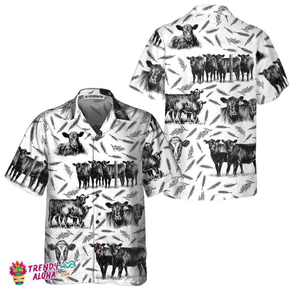 You’re viewing Monochrome Black Angus And Wheat Pattern Cow Hawaiian Shirt, Funny Hawaiian Shirt With Cows.