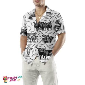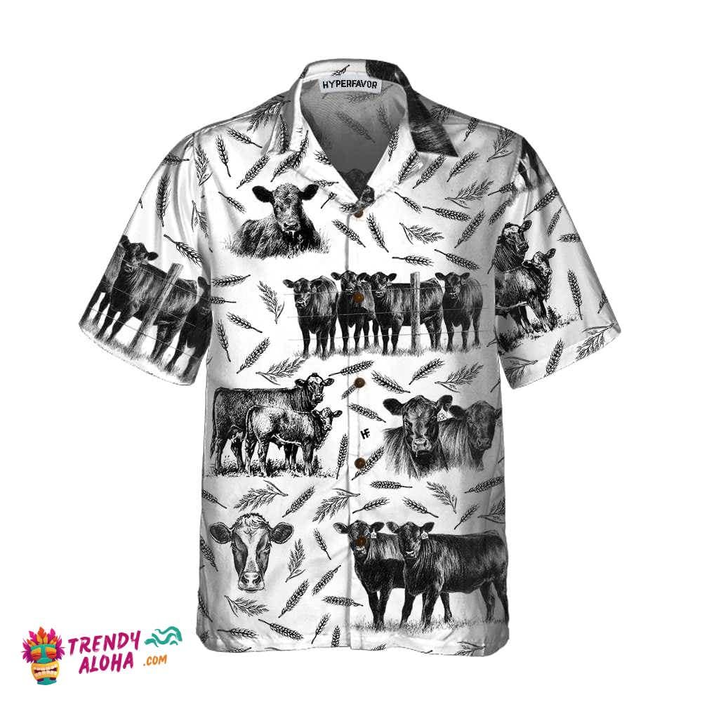 You’re viewing Monochrome Black Angus And Wheat Pattern Cow Hawaiian Shirt, Funny Hawaiian Shirt With Cows.