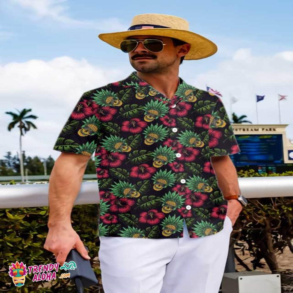 You’re viewing Native American Pineapple Chief Skull Hawaiian Shirt, Funny Tropical Skull Native American Shirt.