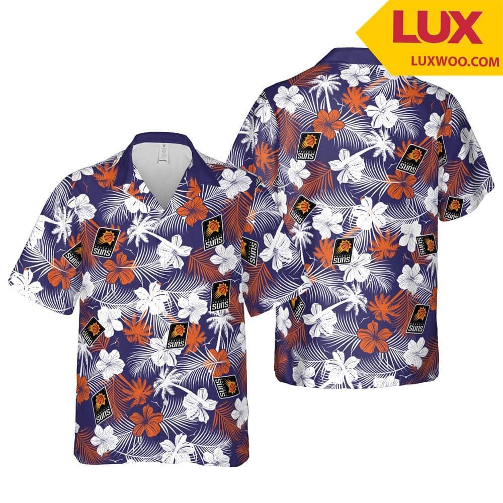 You’re viewing NBA Phoenix Suns White Orange Tropical Flowers Hawaiian Shirt.