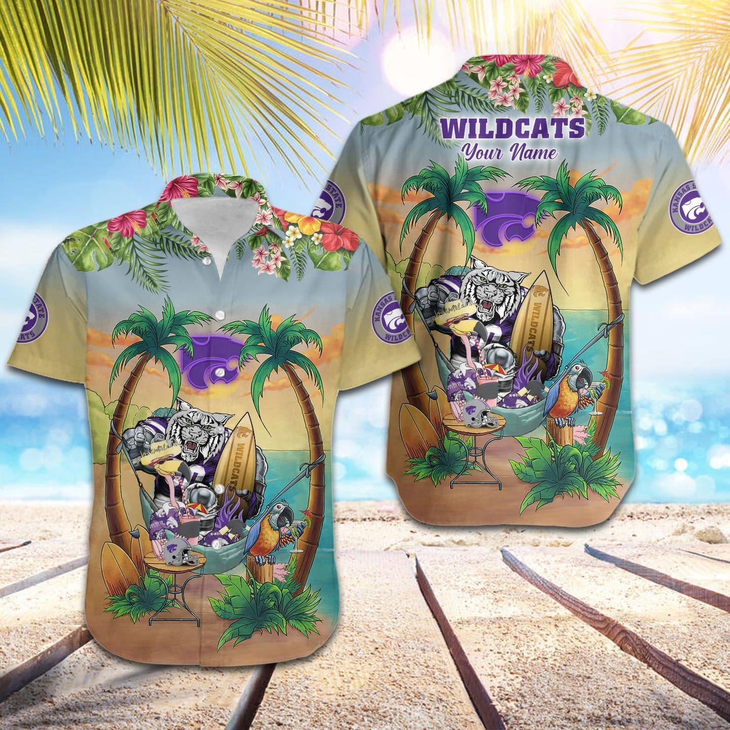 You’re viewing NCAA Kansas State Wildcats Custom Name Flamingo Parrot Hawaiian Shirt.